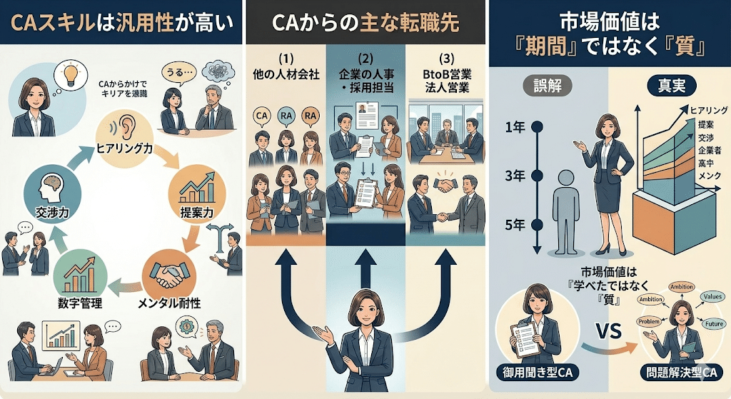CAの仕事を通じて身につくのは、単なる「求人紹介スキル」ではありません。
